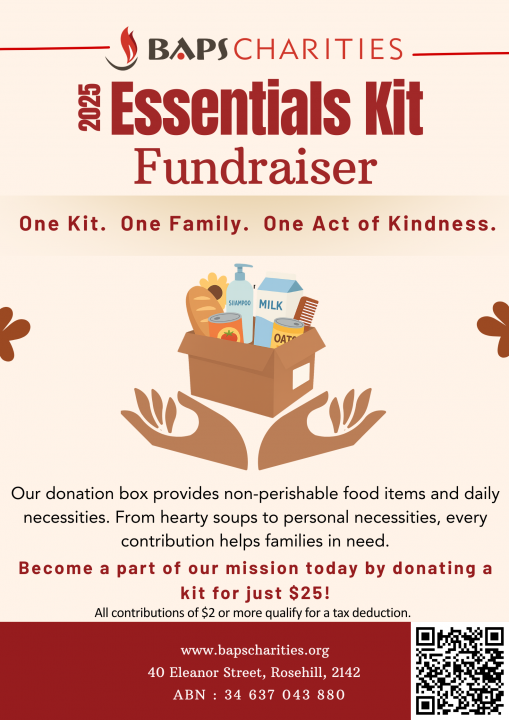As the cost of living continues to place pressure on households across Australia, many families are forced to make impossible choices between a warm meal and basic hygiene products. The BAPS Charities 2025 Essentials Kit Fundraiser is our response to this growing need.