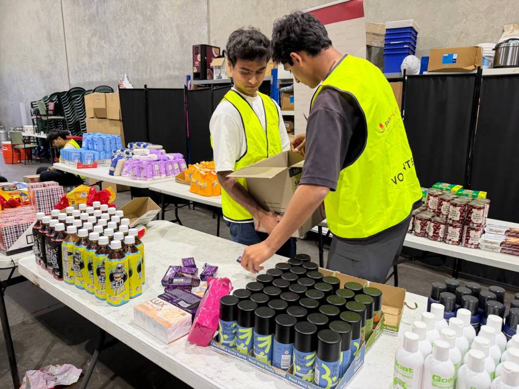 Volunteers meticulously packed the 50 kits—totalling over 450 kilograms of supplies—with a specific focus on longevity and nutrition. Each kit was designed to sustain a family of four for one week.