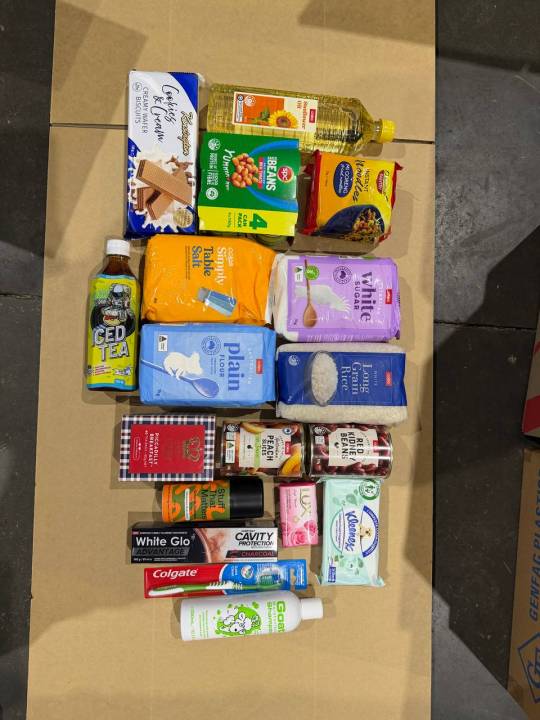 Sustenance: Vital pantry staples such as rice, flour, sunflower oil, canned vegetables, and pasta.