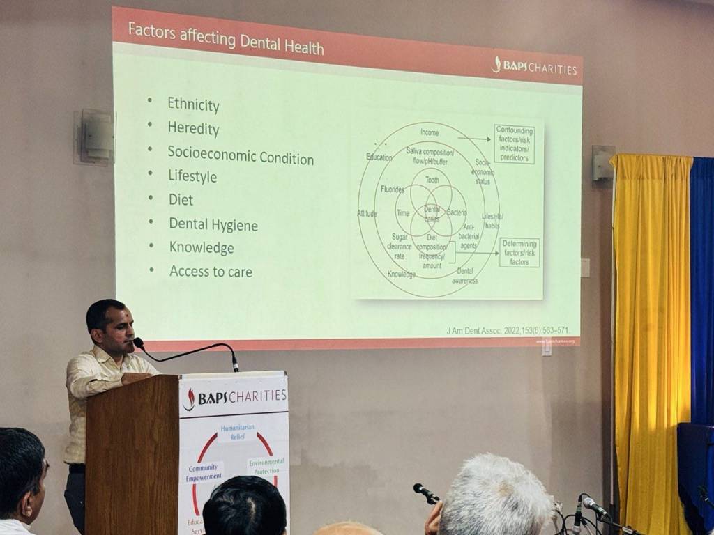 Satish Patel highlighted practical steps for prevention—brushing twice daily with fluoride toothpaste, flossing, using fluoride mouthwash, maintaining a balanced diet, and visiting a dentist regularly. Attendees also learned about choosing the right toothbrush and toothpaste, and how lifestyle factors such as smoking and poor nutrition impact dental health.