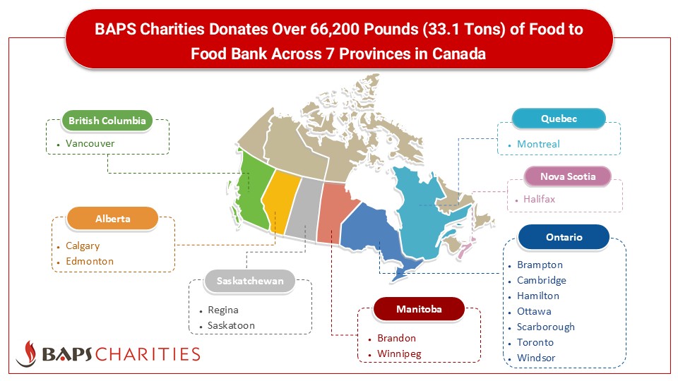 BAPS Charities Donates Over 66,200 Pounds (33.1 Tons) of Food to Food Banks Across Canada
