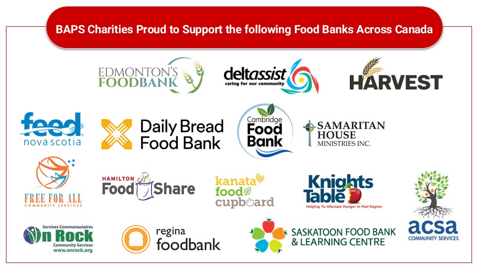 The food banks supported by BAPS Charities included:
