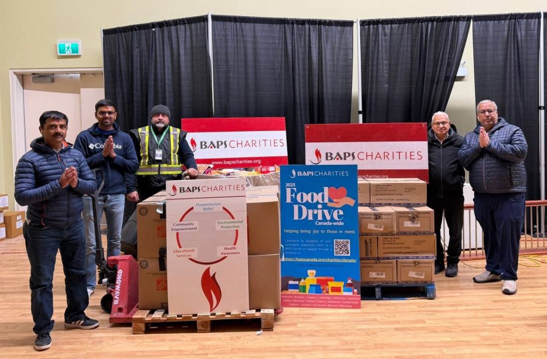 BAPS Charities donated more than 66,200 pounds (33.1 tons) of non-perishable food items to local food banks across Canada during the months of November and December 2025. Volunteers organized food drives in seven provinces to provide vital support to families and individuals facing food insecurity. This initiative reflects the organization’s ongoing commitment to alleviating hunger during a time of unprecedented need.