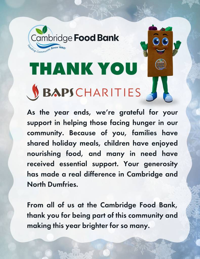 Amarjeet Gill, MP for Brampton West, posted on social media, “Community isn’t just where we live — it’s how we take care of each other. Thank you to BAPS Charities for leading these charity initiatives that bring people together and support families who need it most. Together, we build a safer, stronger, and more caring Brampton West.”