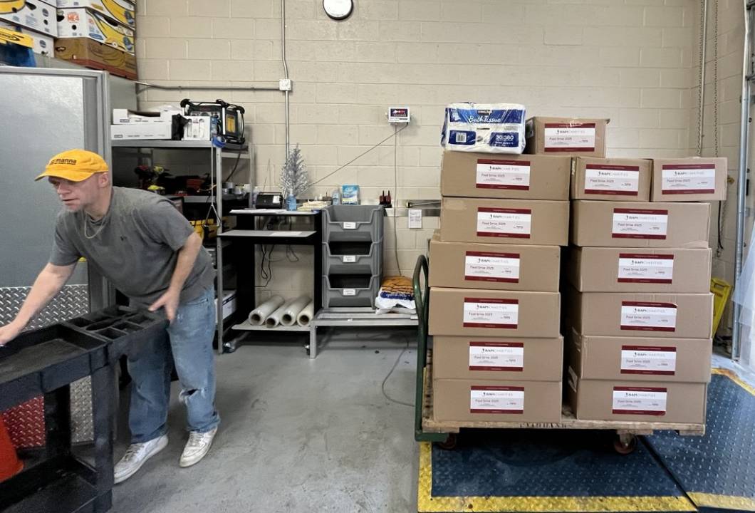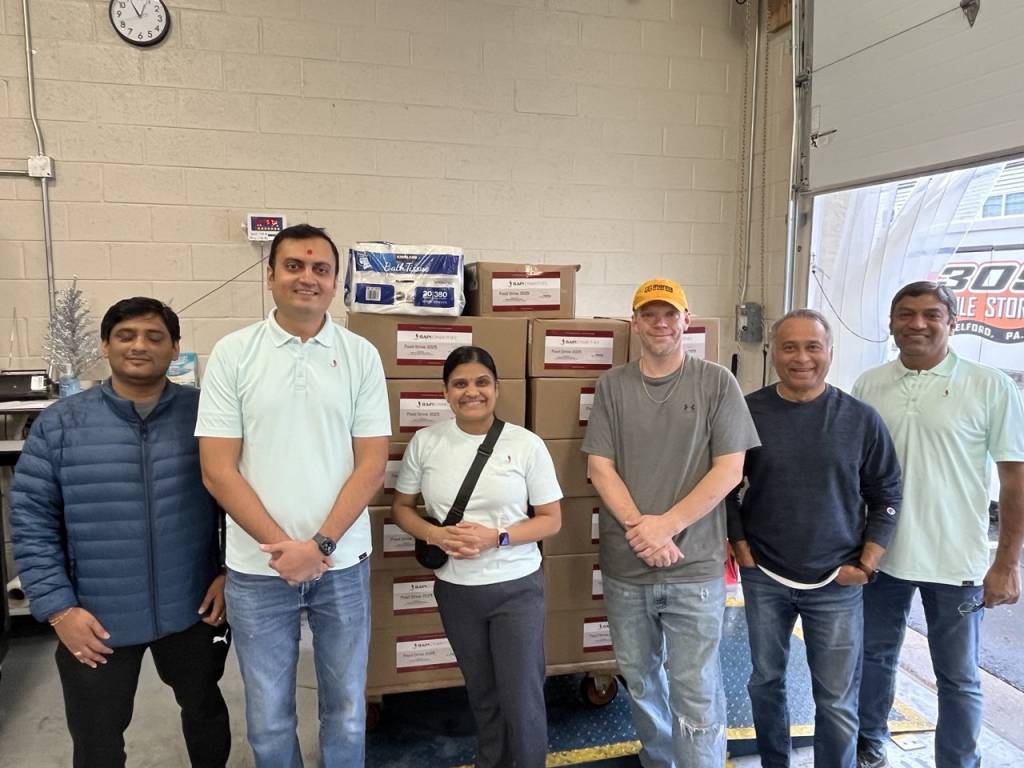 BAPS Charities held its annual food drive on December 19, 2025 in Lansdale, PA benefiting Manna On Main Street. Volunteers of all ages collected more than 491 lbs of canned/dry food & hygiene supplies for local families in need.