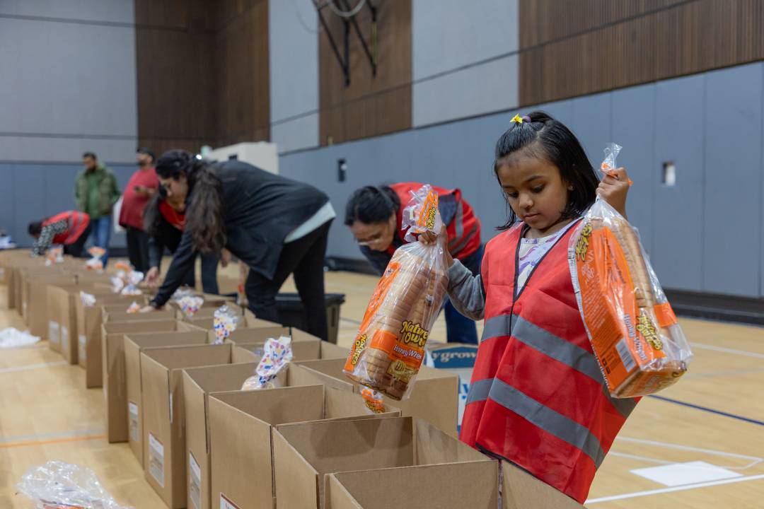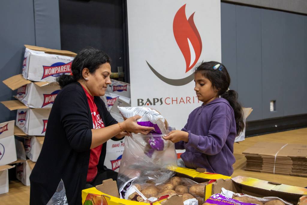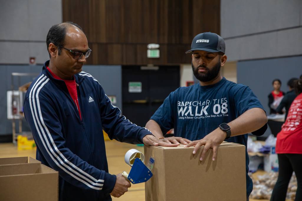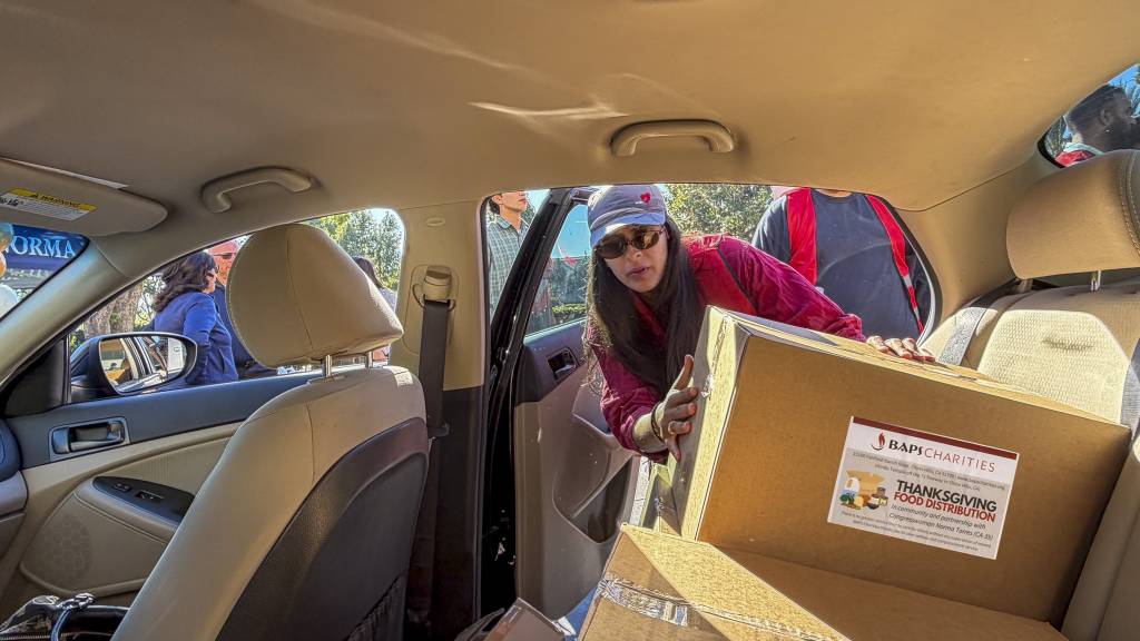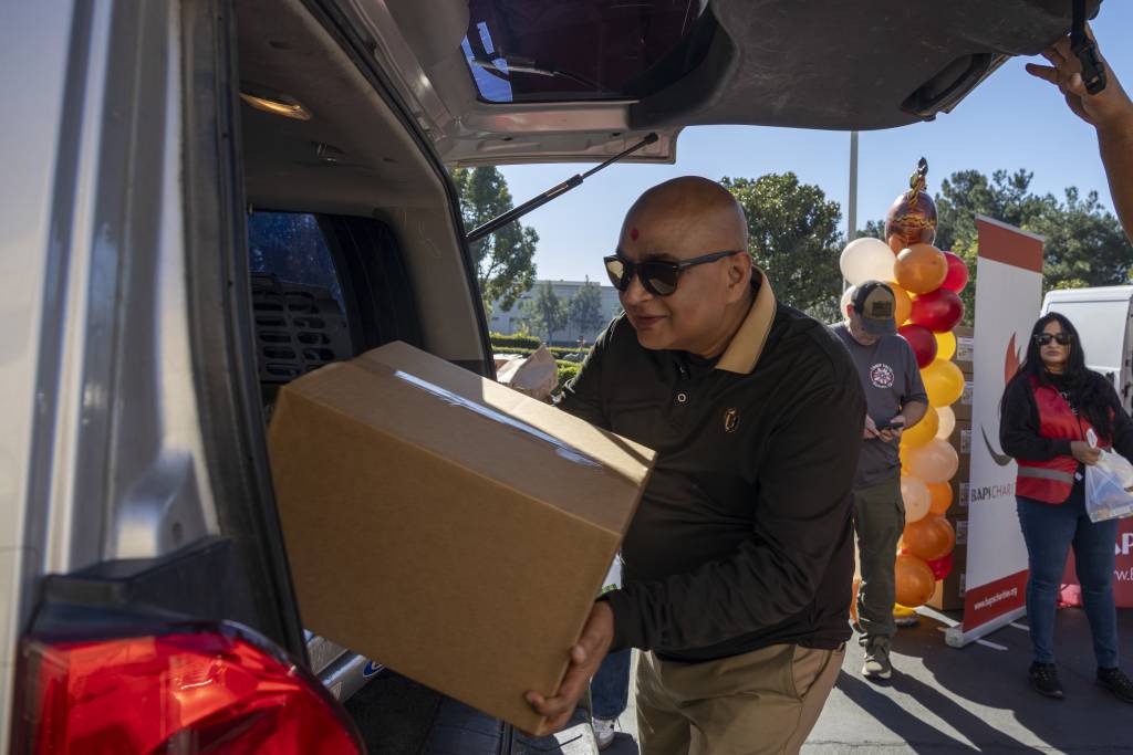 Each grocery box included potatoes, carrots, apples, butter, milk, cheese, canned vegetables and fruit, bread, and rice—items chosen to be both practical and nourishing. BAPS Charities volunteers worked side by side to pack, organize, and distribute the boxes, ensuring families were welcomed with dignity and care. The event reflected the spirit of seva, or selfless service, transforming a Thanksgiving giveaway into a moment of community connection and gratitude.